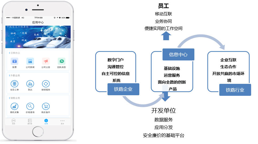 ● 为全路企业、职工提供统一移动APP和移动化营业平台